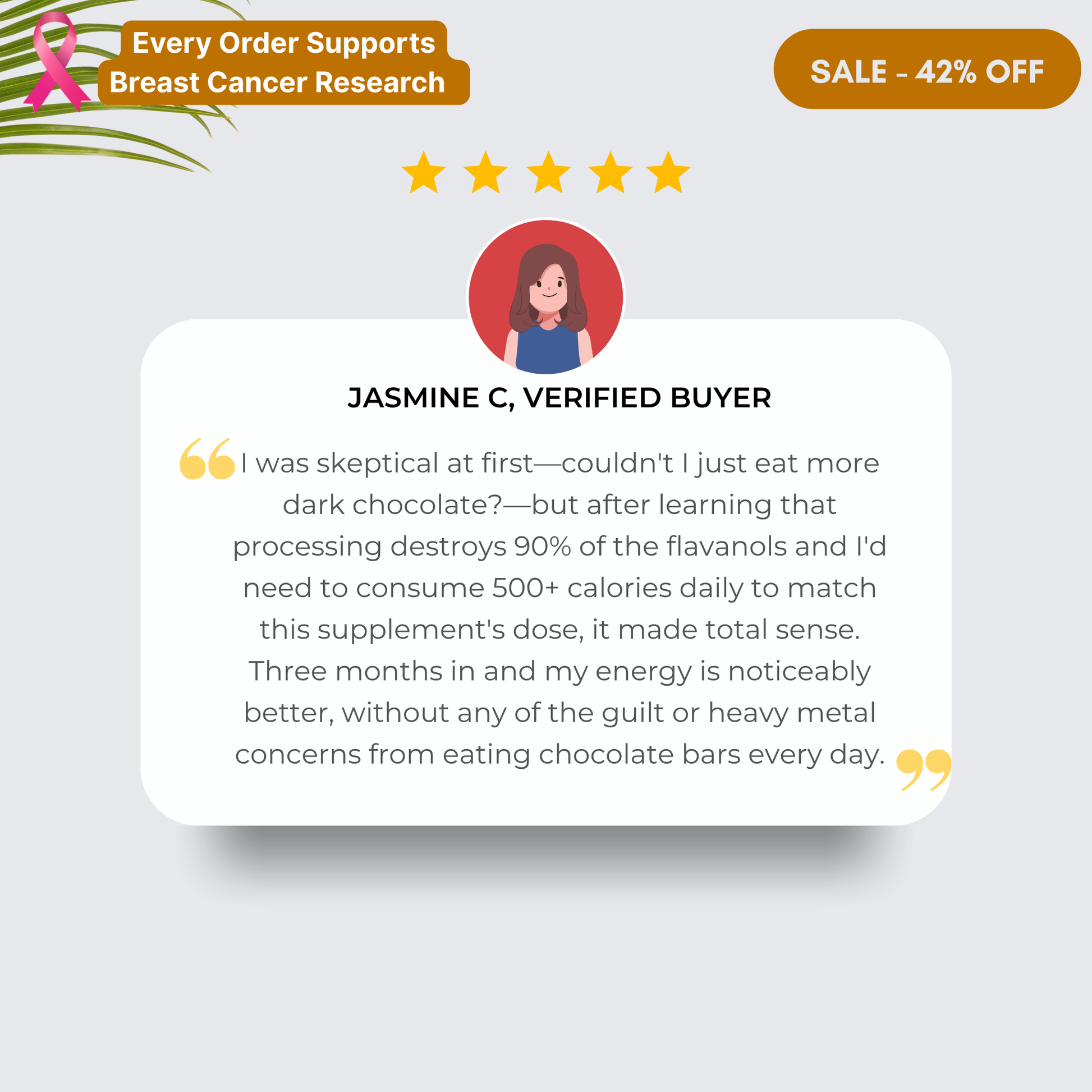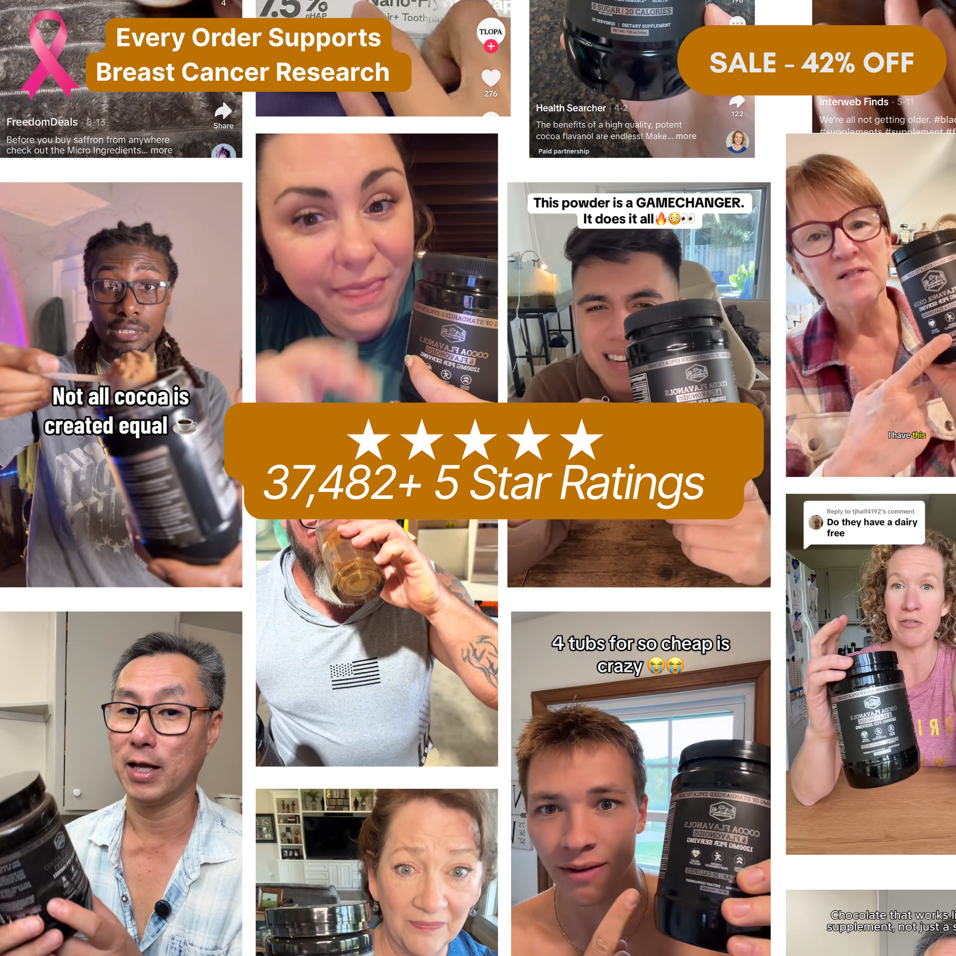 While other cocoa supplements give you weak doses and chalky texture, our research-backed formula delivers 10X the flavanols of regular cocoa, blocking oxidative stress, flooding your cells with oxygen, and progressively strengthening your heart while actually tasting like rich, smooth chocolate. Just a simple morning ritual that transforms your coffee into your secret weapon, so you can stop worrying about brain fog at 3pm and start feeling sharp, energized, and confident all day.